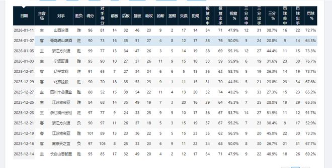 - 2026年01月11日 青岛击败吉林 段昂君17分 赵嘉义15分 曾繁日5中0