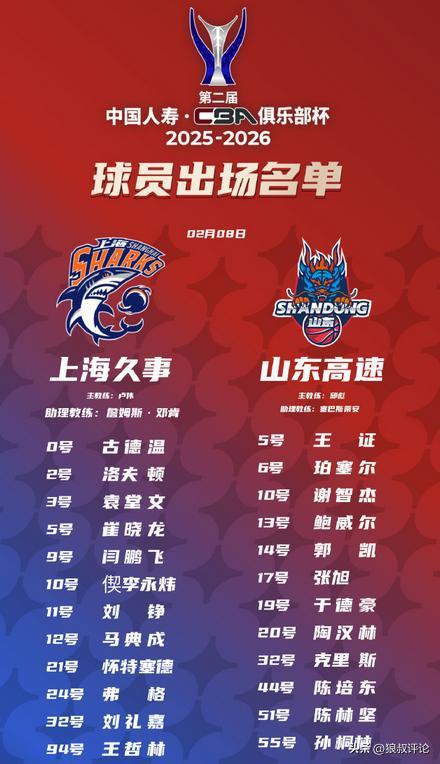 - 上海vs山东CBA杯半决赛12人名单:洛夫顿PK克里斯,刘铮复出