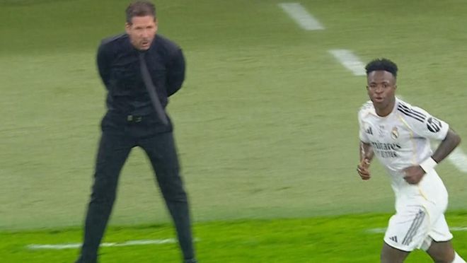 比赛第30分钟左右,维尼修斯主动走向场边,与西蒙尼发生激烈口角。