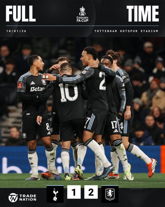 - 2026年01月11日 晋级32强!足总杯-维拉2-1客胜热刺 罗杰斯建功布恩迪亚传射