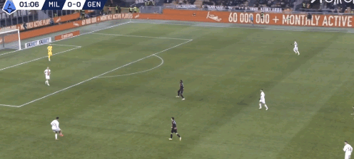 38:15,米兰左路攻势,莱奥背身不停球斜塞给普利西奇,但被热那亚中卫厄斯蒂高预判卡位,随后美国队长反抢犯规。