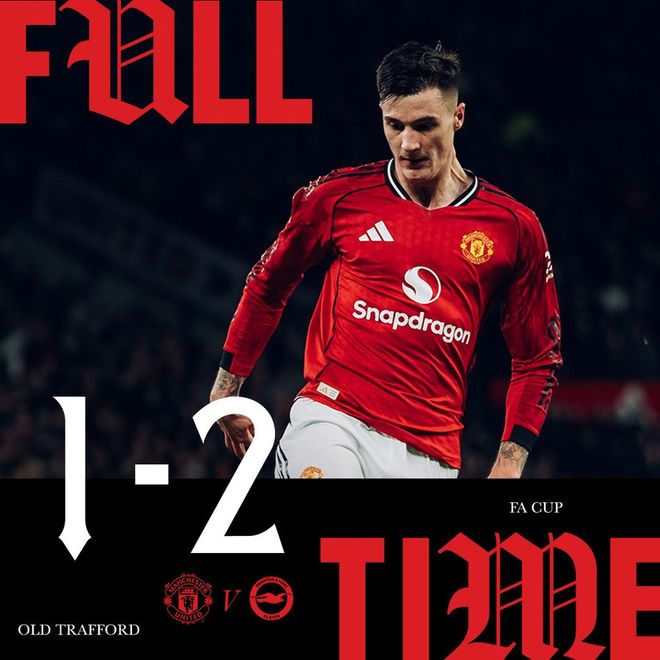 北京时间1月12日00:30,英格兰足总杯第3轮,曼联主场迎战布莱顿。上半场,达洛特错失单刀机会;格鲁达帮助布莱顿取得领先;拉门斯后场送礼险些丢球!下半场,维尔贝克爆射破门弑旧主;舍什科头球帮助曼联扳回一城;小将莱西90分钟砸球发泄,两黄变一红被罚下!最终,曼联1-2不敌布莱顿,足总杯一轮游出局。