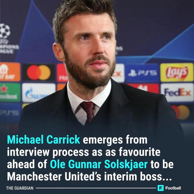 经过上周末的面试,曼联正式的临时主教练人选出现重大变化,名宿迈克尔·卡里克取代了索尔斯克亚,成为了执教红魔到本赛季结束的首选。现在的看守教练达伦·弗莱彻将重回18岁以下青年队任教。