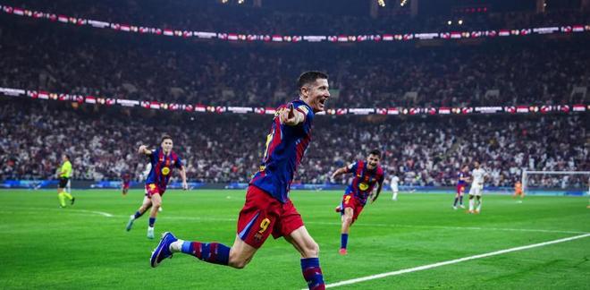 到了 2025 年的超级杯,莱万再次在对阵皇马的比赛中贡献进球,帮助球队以5-2的大比分大胜对手。