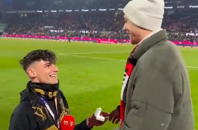 当地时间1月30日周五,在科隆主场对阵沃尔夫斯堡的德甲比赛期间,德国业余裁判帕斯卡-凯泽在莱茵能源体育场近5万名观众面前,向男友莫里茨求婚,这一举动令人印象深刻。这位年轻人在社交媒体上长期致力于反对恐同行为,其求婚举动在全德国引发了强烈反响。
