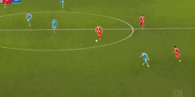 上半场补时第1分钟,凯恩带球长驱直入分球,迪亚斯斜射破门,3比1!